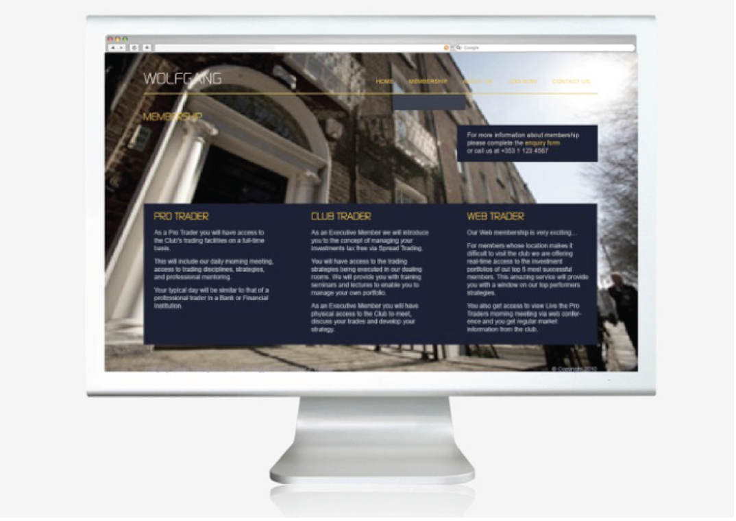Large Irish trading institutions such as Davy’s, Goodbodys and NCB are in a negative place. Due to large redundancies, losses people incurred on their property portfolios and a general distrust that has crept into the Irish psyche, these old institutionalized trading environments are being questioned and there appears to be a growing distrust of these businesses. Wolfgang have identified a new fresh space in the Irish market and plan to bring an independent trading environment to Dublin. Out of eteursa three story building on Baggot Street, Wolfgang will simulate a trading environment for a mix of people from those made redundant from the larger institutions to postgraduates that are just out of college. However, Wolfgang is more than a trading environment, it will provide its clientele and members with a full education on Spread Trading, how to read and follow the markets and ensure that all of their members leave with an ability to make money from Spread Trading. WOLFGANG. DRIVEN BY KNOWLEDGE