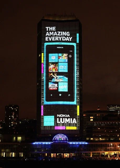 Whilst in London a dynamic projection mapping to the next level with Nokia Lumia and Deadmau5 Millbank Tower display in London ( Music interacting with lights).