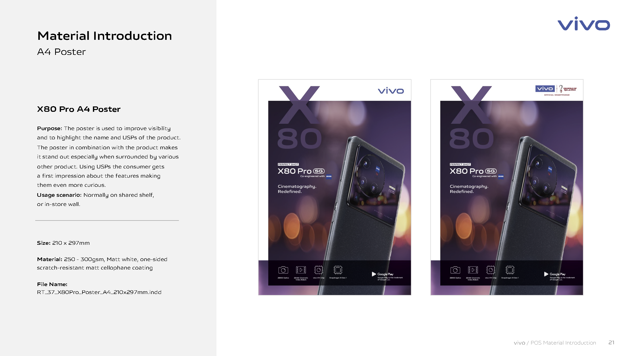The period between 2019 to 2023 we within the vivo marketing dept created numerous lifestyle, product films and photography covering the entire X, V and Y product portfolio specifically for the European market.